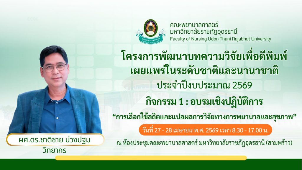 - ประกาศมหาวิทยาลัยราชภัฏอุดรธานี เรื่อง รับสมัครนักศึกษาหลักสูตรผู้ช่วยพยาบาล ประจำปี 2569