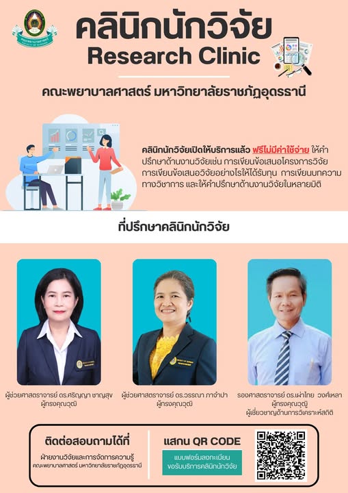 คณะพยาบาลศาสตร์ เปิดให้บริการคลินิกวิจัย ฟรีไม่มีค่าใช้จ่าย ให้คำปรึกษาด้านการวิจัย