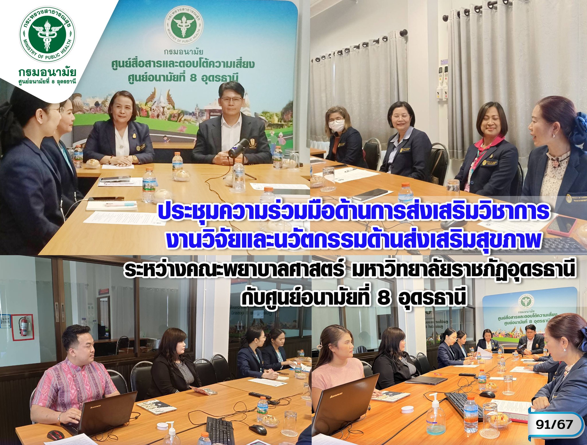 คณบดีคณะพยาบาลศาสตร์ พร้อมทั้งคณาจารย์ ประชุมความร่วมมือด้านการส่งเสริมวิชาการงานวิจัยและนวัตกรรมด้านส่งเสริมสุขภาพ ระหว่างคณะพยาบาลศาสตร์ มหาวิทยาลัยราชภัฏอุดรธานี กับศูนย์อนามัยที่ 8 อุดรธานี