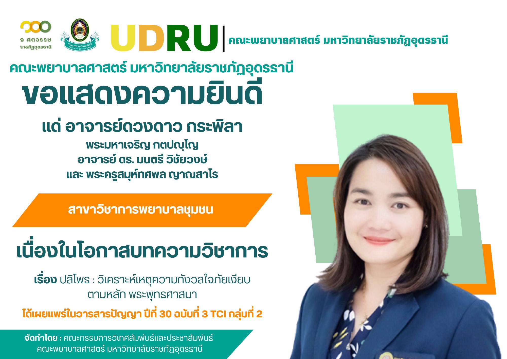ขอแสดงความยินดีกับ อาจารย์ดวงดาว กระพิลา อาจารย์สาขาการพยาบาลชุมชน เนื่องในโอกาสบทความวิชาการ