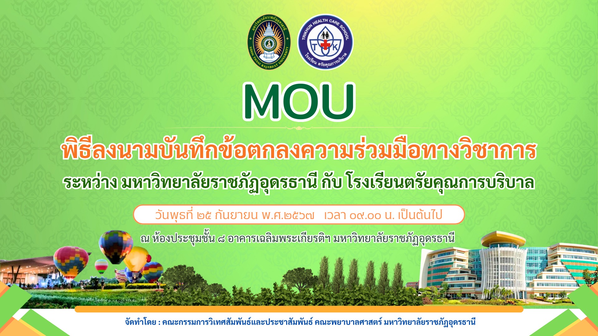 พิธีลงนามบันทึกข้อตกลงความร่วมมือทางวิชาการ (MOU) ระหว่าง มหาวิทยาลัยราชภัฏอุดรธานี กับ โรงเรียนตรัยคุณการบริบาล