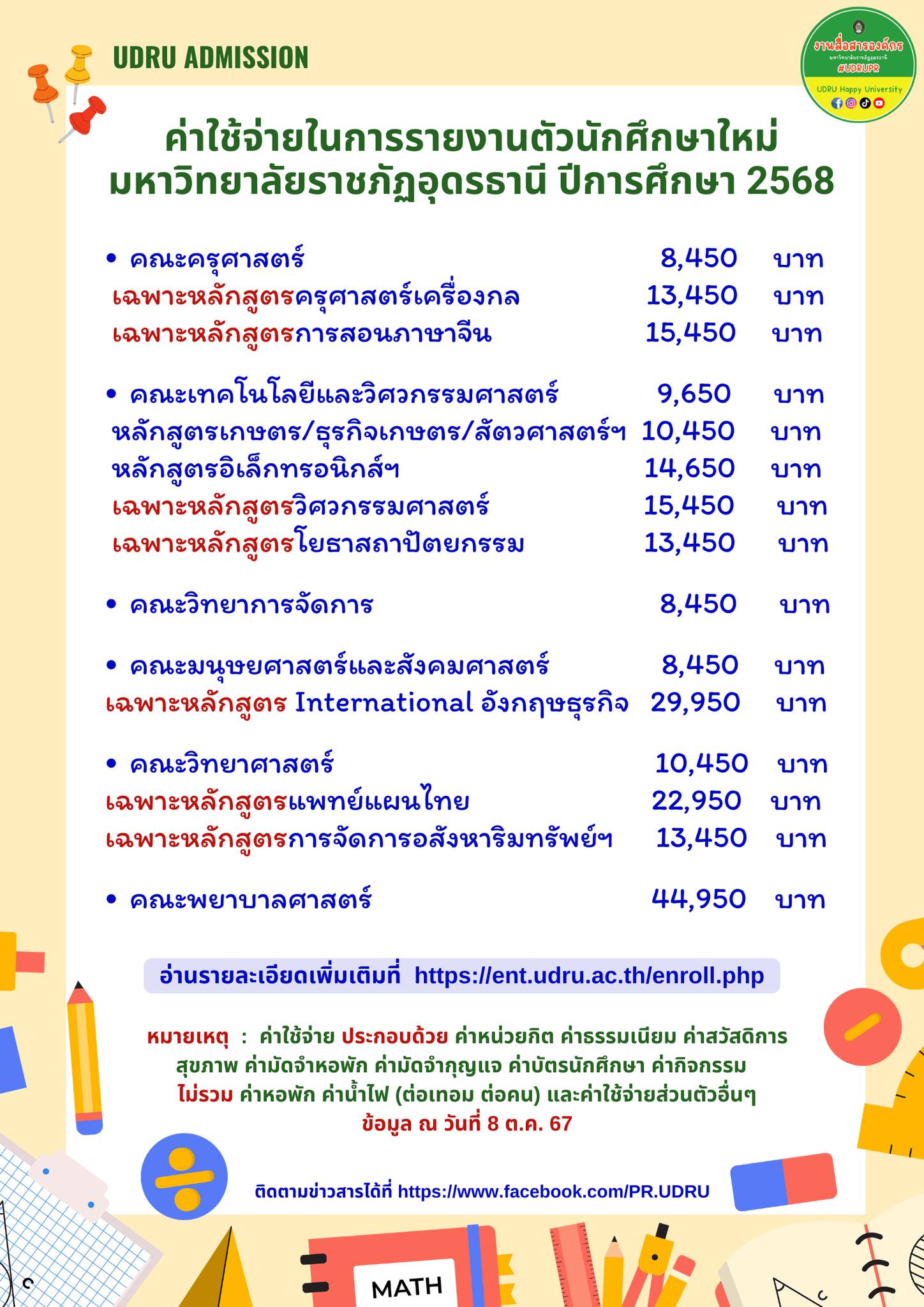 รวมค่าใช้จ่าย ในการรายงานตัวเป็นนักศึกษาใหม่ ปีการศึกษา 2568