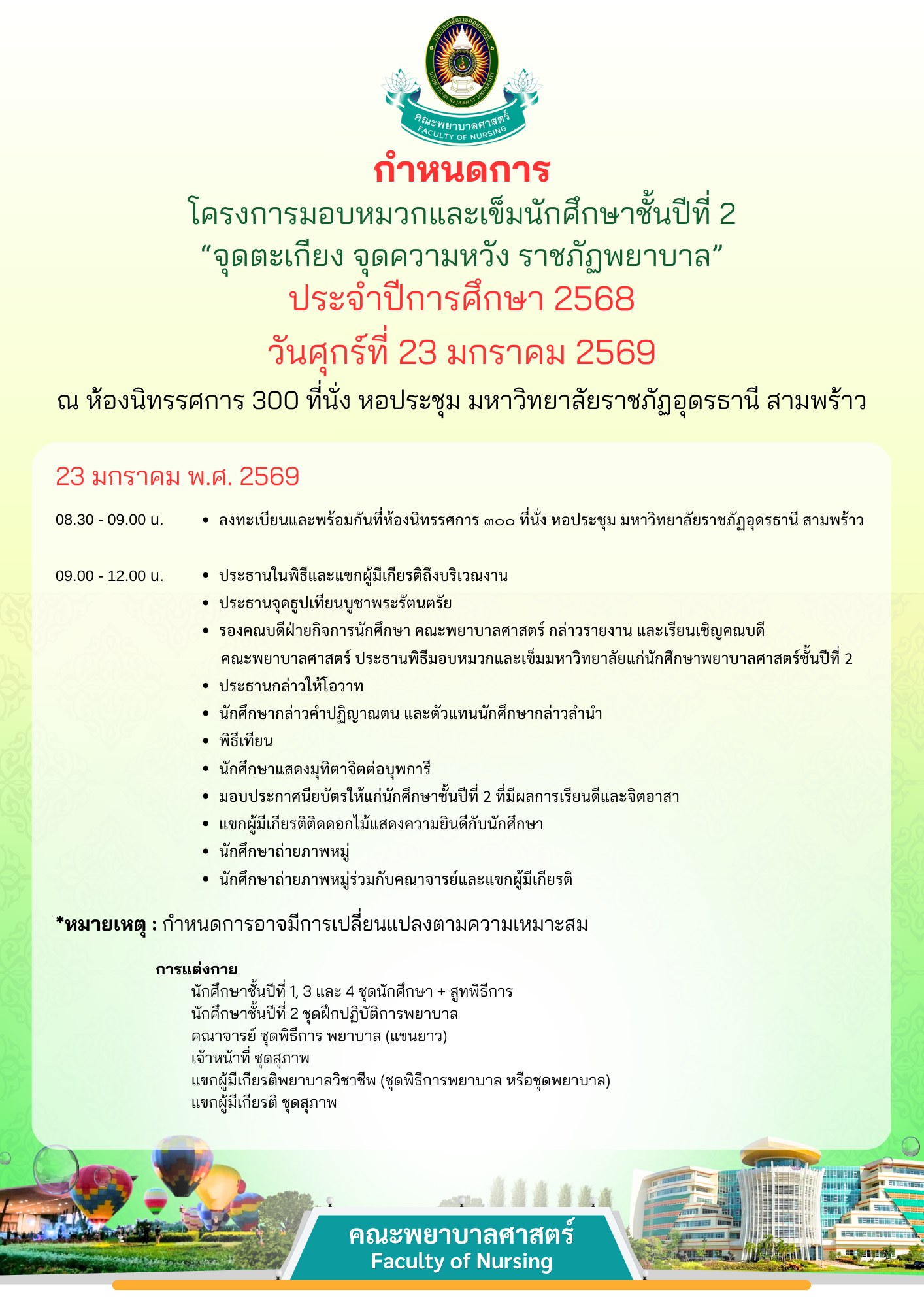 ขอเชิญร่วมพิธีมอบหมวก และเข็ม นักศึกษาพยาบาล ชั้นปีที่ 2