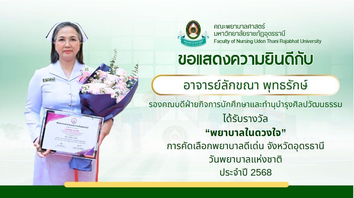 ขอแสดงความยินดีกับ อาจารย์ลักขณา พุทธรักษ์ ได้รับรางวัล “พยาบาลในดวงใจ”
